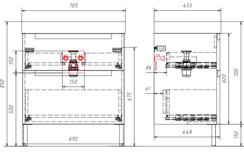 Дополнительно комплектуется: умывальник Грэмми 70 4610119205249, смеситель, сифон. |