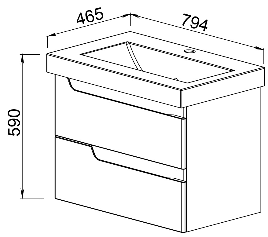 Тумба для умывальника АВН Милано 80, подвесная. Все характеристики |