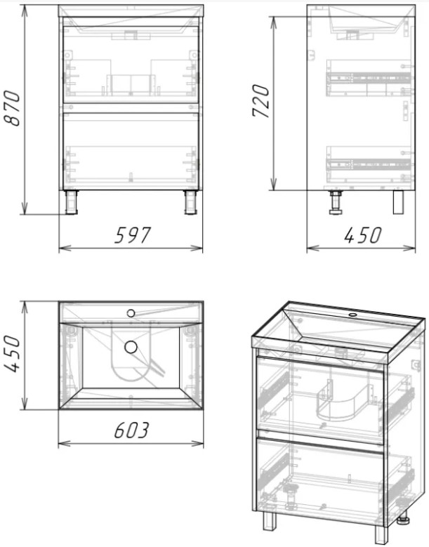 Дополнительно комплектуется: умывальник Слим 60 5018600, смеситель, сифон. |