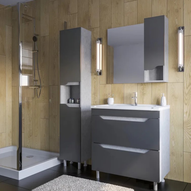Тумба для умывальника Axus Фламини 80 Комфорт напольная, 2 ящ., цемент, GS-00011444. Все характеристики |