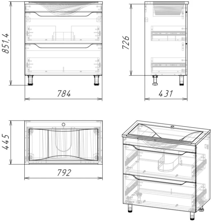 Дополнительно комплектуется: умывальник Комфорт 80 5003800, смеситель, сифон. |