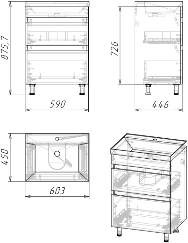 Дополнительно комплектуется: умывальник Слим 60 5018600, смеситель, сифон. |