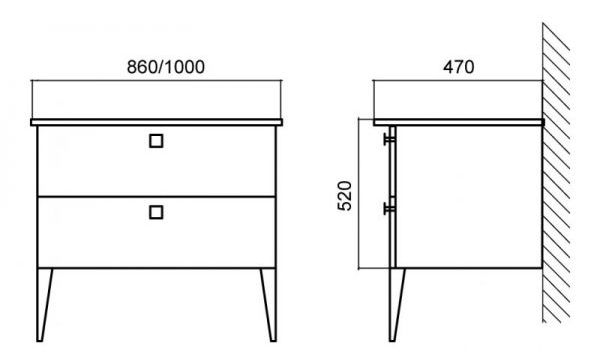 Дополнительно комплектуется: смеситель, сифон, умывальник 9100-KL, комплект ног для тумбы ATRIA-PIA-NL. |