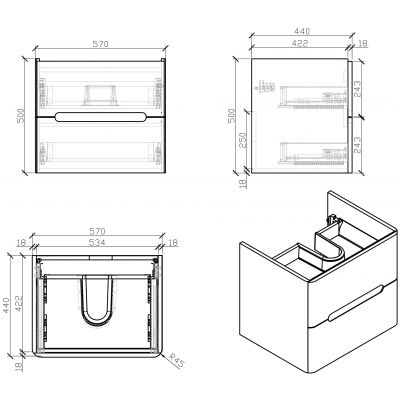 Тумба для умывальника BelBagno Luxury 60, подвесная, Bianco Lucido. Все характеристики |
