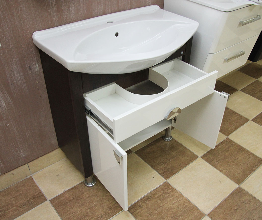 Цвет: фасад - белый глянец, корпус - венге 65Материал: фасад - МДФ, корпус - ПВХ Покрытие: фасад - краска, корпус - пленка Оттенок на мониторе может отличаться от настоящего цвета на тумбе Комплектность: