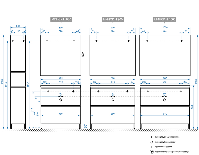Напольная тумба под раковину Belux Минск Н 80-02 4810924297051 из водостойкой МДФ.Свойства. Фасад из МДФ и корпус из ЛДСП, покрытых краской. 5 слоев эмали (Италия). Гладкая блестящая поверхность. Плавное закрывание. Шкаф для раковины Минск 80 см 4810924297051 в ванную. Крепление к стене обязательно - ножки выполняют роль только дополнительной опоры. Размеры тумбы указаны без учета габаритов умывальника. Производство. Белорусско-Испанская компания «Белюкс ЛТД» более 25 лет выпускает мебель для ванных комнат и сантехнику. Старейшее крупное предприятие в стране по изготовлению шкафов и зеркал для санузлов. Покраска мебели на современном фирменном конвейере из Германии. Продукция широко представлена не только на местном рынке, но и занимает немалую долю продаж в Европе. Качество. Изделия Belux отвечают всем международным, европейским и белорусским стандартам и нормам. Только высококачественные и проверенные материалы. Мебель и умывальники в ванную комнату уровня мировых производителей по доступным ценам. Дизайн. В разработке каждой модели принимают участие итальянские, испанские и российские дизайнеры. Победитель в номинациях «Лучшая промышленная новация» и «Качество дизайна» конкурса «Техносфера». Четырехкратный призер премии «Народная марка» в номинации «Производитель мебели для ванной комнаты». Постоянный участник международных выставок MosBuild (Москва, Россия), Cevisana (Валенсия, Испания). Изображение и цвет на мониторе могут отличаться от оригинала. Компания Белюкс оставляет за собой право вносить изменения в конструкцию и дизайн продукции без уведомления покупателей. Комплектность: