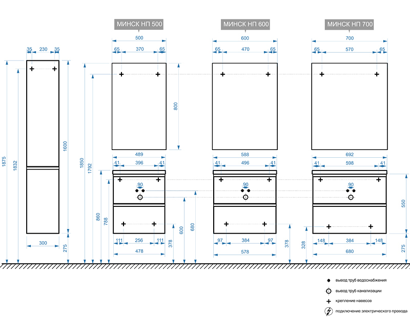 Настенная тумба под раковину Belux Минск НП 60-02 4810924297099 из водостойкой МДФ.Свойства. Фасад из МДФ и корпус из ЛДСП, покрытых краской. 5 слоев эмали (Италия). Гладкая блестящая поверхность. Плавное закрывание. Шкаф для раковины Минск 60 см 4810924297099 в ванную. Размеры тумбы указаны без учета габаритов умывальника. Производство. Белорусско-Испанская компания «Белюкс ЛТД» более 25 лет выпускает мебель для ванных комнат и сантехнику. Старейшее крупное предприятие в стране по изготовлению шкафов и зеркал для санузлов. Покраска мебели на современном фирменном конвейере из Германии. Продукция широко представлена не только на местном рынке, но и занимает немалую долю продаж в Европе. Качество. Изделия Belux отвечают всем международным, европейским и белорусским стандартам и нормам. Только высококачественные и проверенные материалы. Мебель и умывальники в ванную комнату уровня мировых производителей по доступным ценам. Дизайн. В разработке каждой модели принимают участие итальянские, испанские и российские дизайнеры. Победитель в номинациях «Лучшая промышленная новация» и «Качество дизайна» конкурса «Техносфера». Четырехкратный призер премии «Народная марка» в номинации «Производитель мебели для ванной комнаты». Постоянный участник международных выставок MosBuild (Москва, Россия), Cevisana (Валенсия, Испания). Изображение и цвет на мониторе могут отличаться от оригинала. Компания Белюкс оставляет за собой право вносить изменения в конструкцию и дизайн продукции без уведомления покупателей. Комплектность: