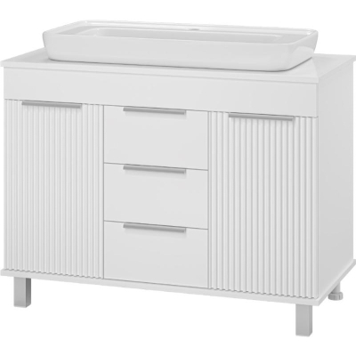 Тумба для умывальника Brevita Enfida 100 напольная, 2 дв., 3 ящ., белый матовый\матовый хром. Все характеристики |