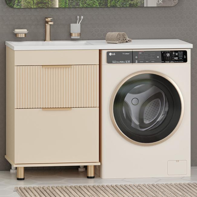 Тумба под стиральную машину Brevita Enfida 60 для умывальника 120, напольная, 2 ящ., бежевый матовый\золото. Все характеристики |