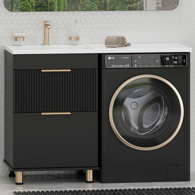 Тумба под стиральную машину Brevita Enfida 60 для умывальника 120, напольная, 2 ящ., черный матовый\золото. Все характеристики |