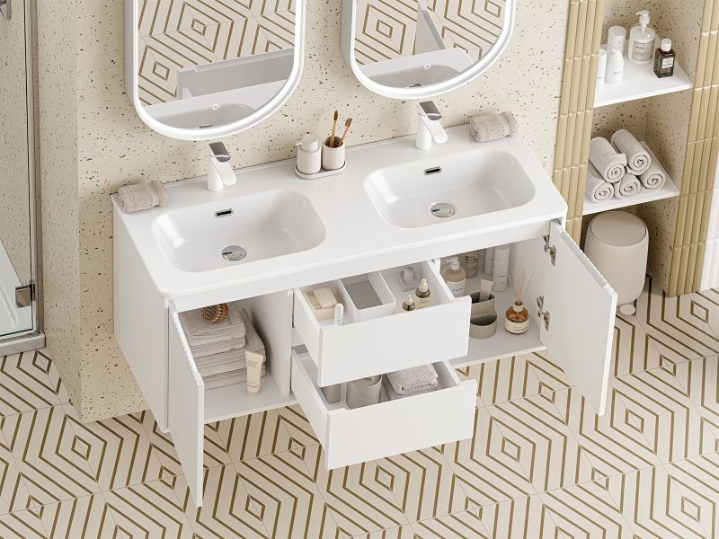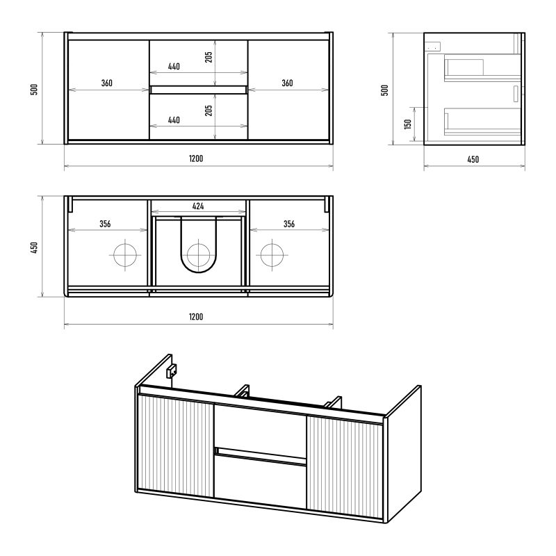В комплекте: подвесы-2 шт.Дополнительно комплектуется: умывальник Onda 120 см, смеситель, сифон. |