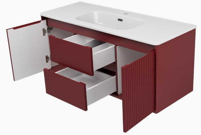 Тумба для умывальника Brevita Wine 120, подвесная, 2 ящ., 2 дв., матов. бордовый. Все характеристики |