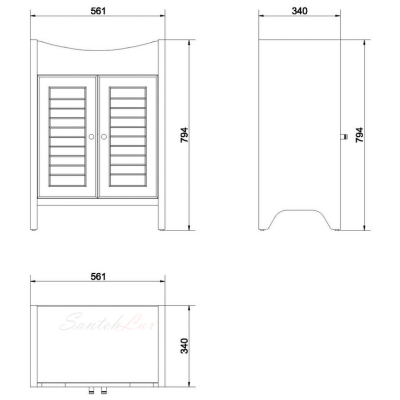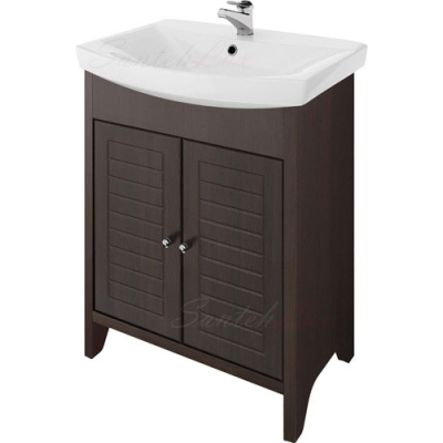 Ширина тумбы - 56 см. Ширина умывальника - 60 см.Цвет: венге. Материал: фасад - МДФ, корпус - ДСП. Комплектность: