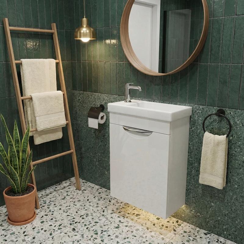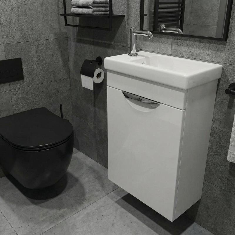 Тумба для умывальника Emmy Милли 40 подвесная, с ручкой, левая, 4603736681060. Все характеристики |