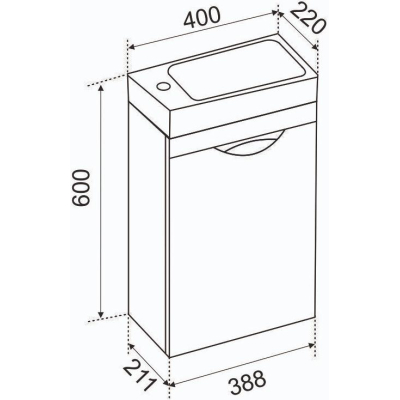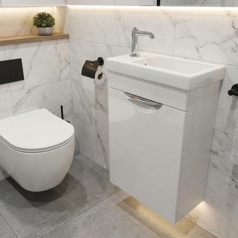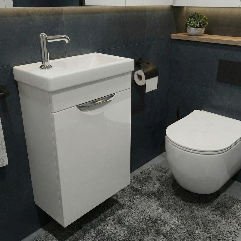 Тумба для умывальника Emmy Милли 40 подвесная, с ручкой, правая, 4603736681695. Все характеристики |