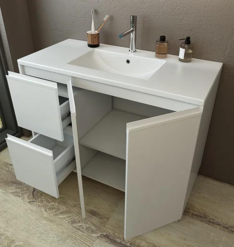 Тумба для умывальника Emmy Вега 100 напольная, 2 ящ., 2 дв., белый, 310164. Все характеристики |