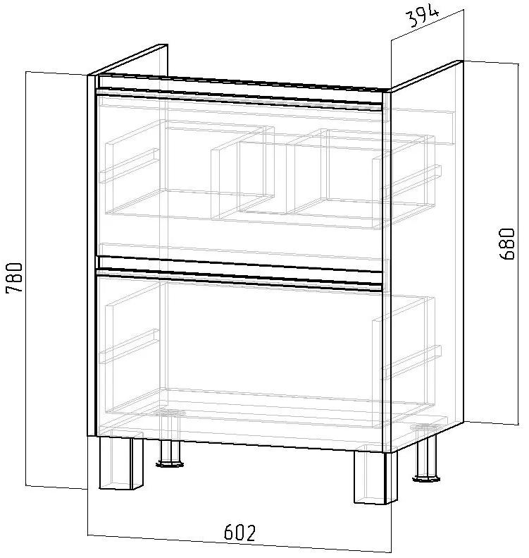 Тумба для умывальника Emmy Вега 60 напольная, 2 ящ., белый, 310160. Все характеристики |