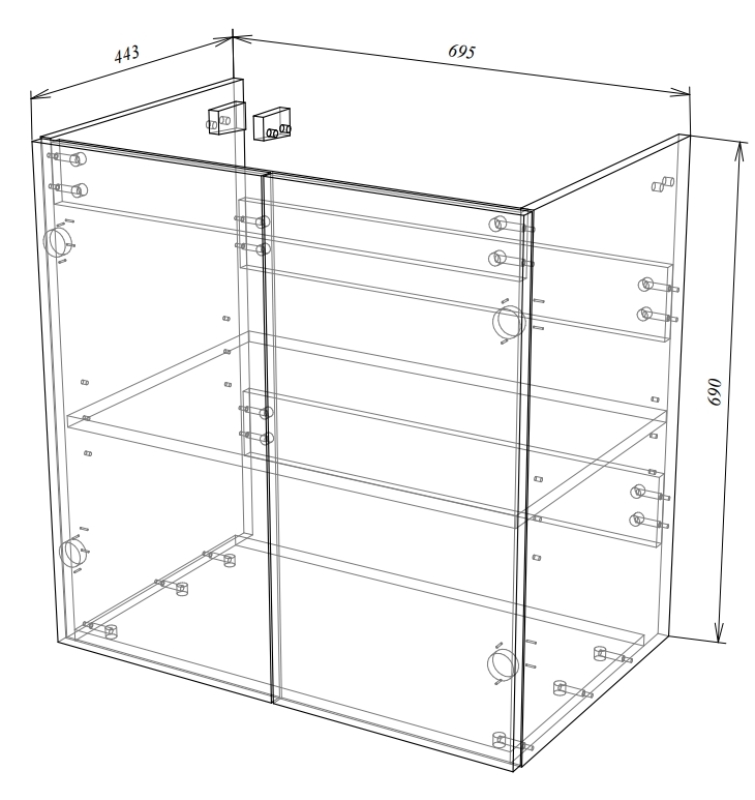 В комплекте: навесы регулируемые 2шт., шуруп Г-образный с дюбелем для крепления к стене — 2 шт., ручка-2 шт.Дополнительно комплектуется: умывальник Астория 70 см 10.170.00700.001, смеситель, сифон. |