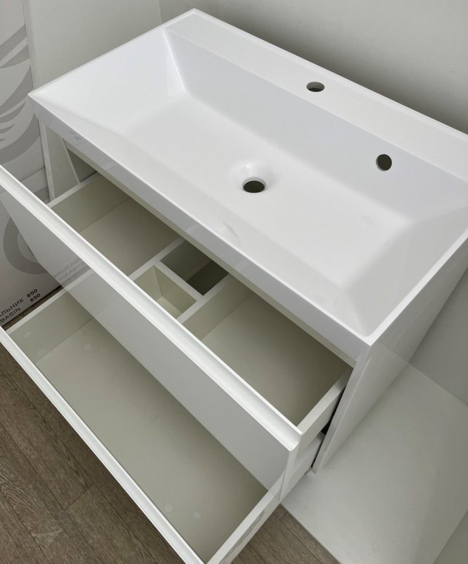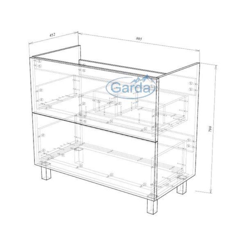 Тумба под раковину Garda Grado 90 см 26.58.900 из влагостойкой МДФ.Свойства. Фасад из МДФ толщиной 22 мм. Корпус из МДФ толщиной 16 мм. 5 слоев высокоглянцевой белой эмали (Италия). Направляющие с доводчиками. В верхнем ящике вырез под сифон. Монтаж на 4 ножки только согласно разметке на дне шкафа. Размеры тумбы указаны без учета габаритов умывальника. Производство. Компания Garda занимает лидирующую позицию в Беларуси по выпуску фасадов из МДФ более 20 лет. В 2019 году освоила новое направление в изготовлении мебели для ванных комнат. Высокотехнологичное оборудование. Качество. Материалы мировых брендов. 5 ступеней нанесения эмали видимых частей фасадов и боковин. Фурнитура с доводчиками известных производителей для плавного хода дверей и ящиков. Контроль на каждом этапе производства. Изображение и цвет на мониторе могут отличаться от оригинала. Комплектность: