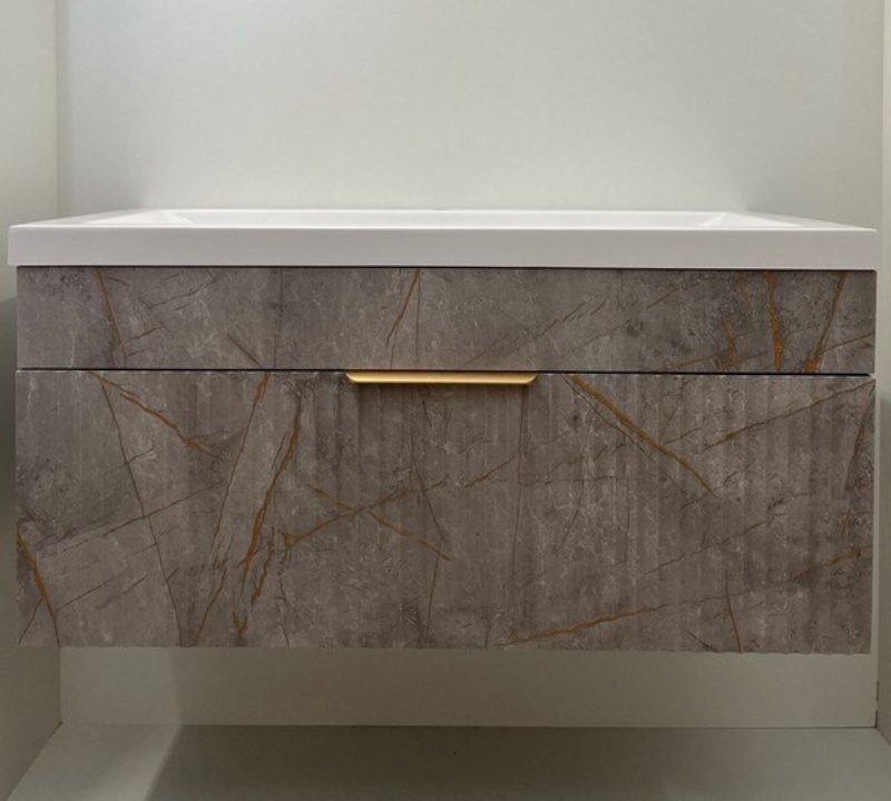 Тумба под раковину Garda Onda 100 см, 09.106н.1000.PVC,мр.зол из влагостойкой МДФ.Свойства. Фасад из МДФ, покрытие экошпон PVC. Цвет-мрамор с золотом. Корпус из ЛДСП. Боковины корпуса из МДФ, покрытие экошпон PVC. Цвет-мрамор с золотом. 1 выдвижной ящик. Направляющие скрытого монтажа с доводчиком. Размеры указаны без учета габаритов умывальника. Производство. Компания Garda занимает лидирующую позицию в Беларуси по выпуску фасадов из МДФ более 20 лет. В 2019 году освоила новое направление в изготовлении мебели для ванных комнат. Высокотехнологичное оборудование. Качество. Материалы мировых брендов. 5 ступеней нанесения эмали видимых частей фасадов и боковин. Фурнитура с доводчиками известных производителей для плавного хода дверей и ящиков. Контроль на каждом этапе производства. Изображение и цвет на мониторе могут отличаться от оригинала. Комплектность: