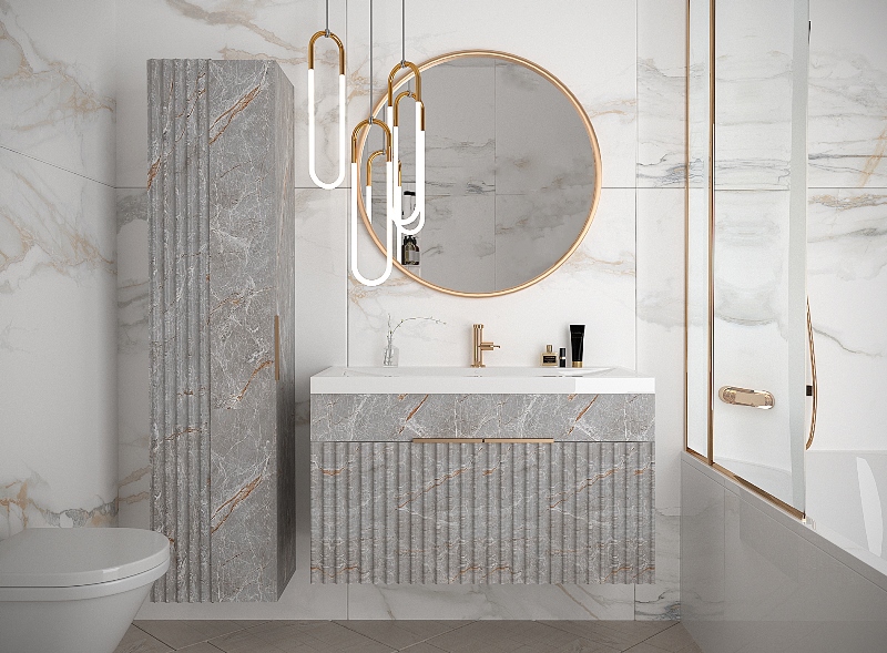 Тумба под раковину Garda Onda 75 см, 09.51н.750.PVC, мр.зол из влагостойкой МДФ.Свойства. Фасад из МДФ, покрытие экошпон PVC. Цвет-мрамор с золотом. Корпус из ЛДСП. Боковины корпуса из МДФ, покрытие экошпон PVC. Цвет-мрамор с золотом. 2 распашные двери, внутри 1 полка на полкодержателях. Петли с доводчиком. Без задней стенки. Размеры указаны без учета габаритов умывальника. Производство. Компания Garda занимает лидирующую позицию в Беларуси по выпуску фасадов из МДФ более 20 лет. В 2019 году освоила новое направление в изготовлении мебели для ванных комнат. Высокотехнологичное оборудование. Качество. Материалы мировых брендов. 5 ступеней нанесения эмали видимых частей фасадов и боковин. Фурнитура с доводчиками известных производителей для плавного хода дверей и ящиков. Контроль на каждом этапе производства. Изображение и цвет на мониторе могут отличаться от оригинала. Комплектность: