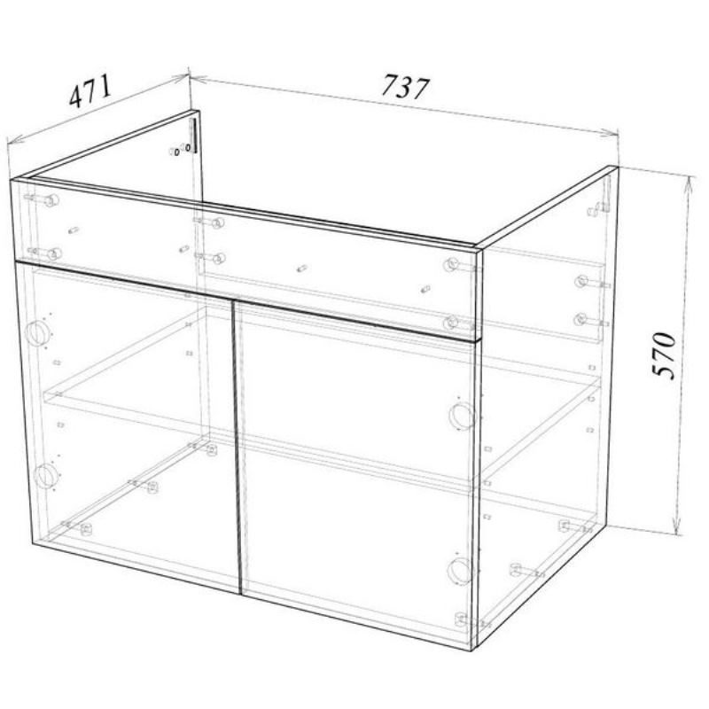 В комплекте: навесы регулируемые 2шт., шуруп Г-образный с дюбелем для крепления к стене 2 шт., ручки 2 шт.Дополнительно комплектуется: умывальник Анита 75 см 10.150.00750.001, столешница СТ_106.750_PVC,мр.зол, смеситель, сифон. |