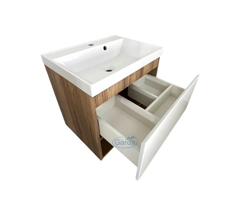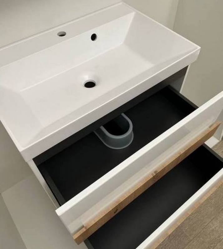 Тумба под раковину Garda Sorento 70 см, 14.58н.700.PVC из влагостойкой МДФ.Свойства. Фасад и корпус из МДФ, цвет-белый глянцевый, покрытие-пленка ПВХ. 2 выдвижных ящика, Направляющие скрытого монтажа с доводчиком. Предусмотрен вырез под сифон. Ящики из ЛДСП, цвет-серый. Ручки на ящиках-покрытие PVC, цвет-дуб артизан. Без задней стенки. Размеры указаны без учета габаритов умывальника. Производство. Компания Garda занимает лидирующую позицию в Беларуси по выпуску фасадов из МДФ более 20 лет. В 2019 году освоила новое направление в изготовлении мебели для ванных комнат. Высокотехнологичное оборудование. Качество. Материалы мировых брендов. 5 ступеней нанесения эмали видимых частей фасадов и боковин. Фурнитура с доводчиками известных производителей для плавного хода дверей и ящиков. Контроль на каждом этапе производства. Изображение и цвет на мониторе могут отличаться от оригинала. Комплектность: