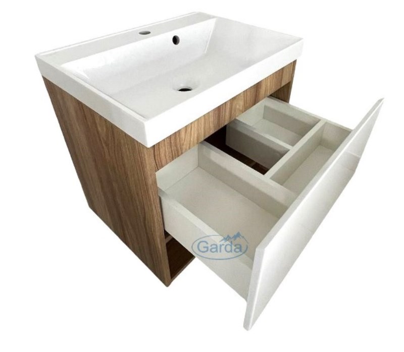 Тумба под раковину Garda Sorento 60 см, 14.63н.600 из влагостойкой МДФ.Свойства. Фасад из МДФ, цвет-белый глянцевый/дерево, покрытие-эмаль. Корпус из МДФ, цвет-дерево. 1 выдвижной ящик, 3 отделения. Направляющие скрытого монтажа с доводчиком. Предусмотрен вырез под сифон. Размеры указаны без учета габаритов умывальника. Производство. Компания Garda занимает лидирующую позицию в Беларуси по выпуску фасадов из МДФ более 20 лет. В 2019 году освоила новое направление в изготовлении мебели для ванных комнат. Высокотехнологичное оборудование. Качество. Материалы мировых брендов. 5 ступеней нанесения эмали видимых частей фасадов и боковин. Фурнитура с доводчиками известных производителей для плавного хода дверей и ящиков. Контроль на каждом этапе производства. Изображение и цвет на мониторе могут отличаться от оригинала. Комплектность: