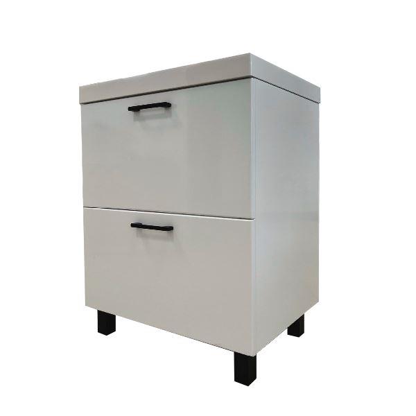 Тумба под раковину Garda Verona 60 см, 19.38.600.PVC, белый глянцевый из влагостойкой МДФ.Свойства. Фасад и корпус из МДФ, покрытие PVC, цвет-белый глянец. 2 выдвижных ящика, направляющие скрытого монтажа с доводчиком, вырез под сифон. Фурнитура черная матовая. Установка согласно разметке на дне тумбы. Размеры указаны без учета габаритов умывальника. Производство. Компания Garda занимает лидирующую позицию в Беларуси по выпуску фасадов из МДФ более 20 лет. В 2019 году освоила новое направление в изготовлении мебели для ванных комнат. Высокотехнологичное оборудование. Качество. Материалы мировых брендов. 5 ступеней нанесения эмали видимых частей фасадов и боковин. Фурнитура с доводчиками известных производителей для плавного хода дверей и ящиков. Контроль на каждом этапе производства. Изображение и цвет на мониторе могут отличаться от оригинала. Комплектность: