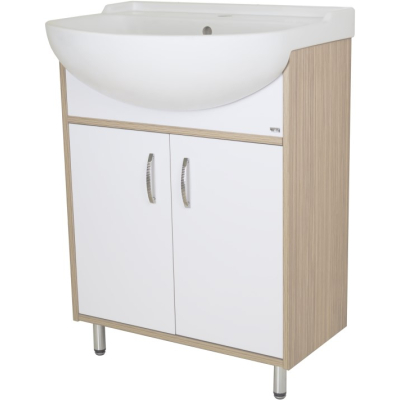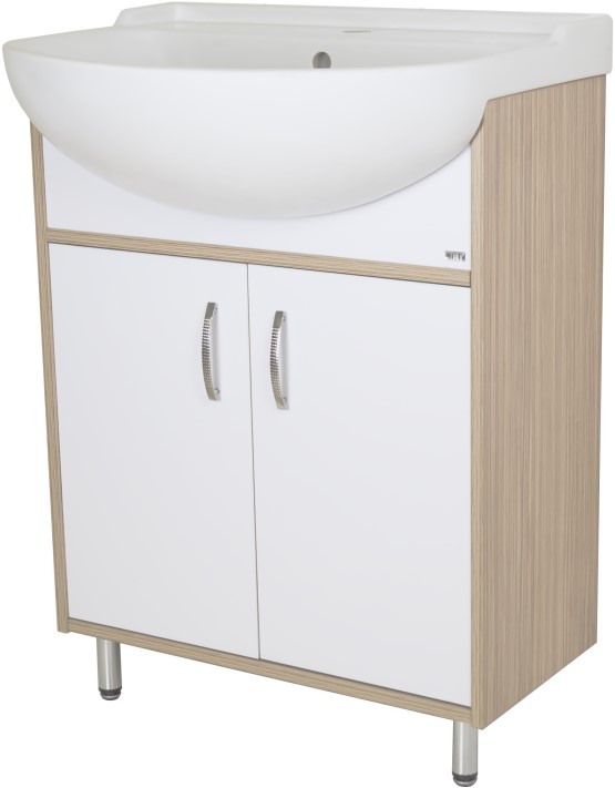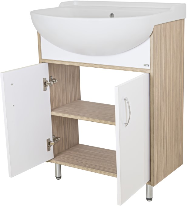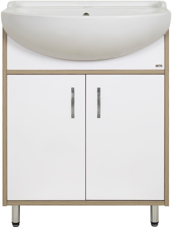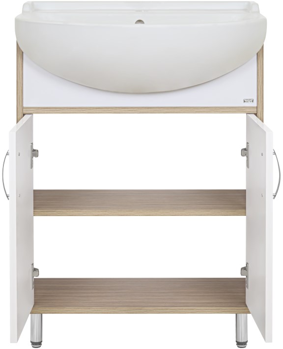 Тумба для умывальника Misty Делла 60 напольная, прям., 2 дв., светлое дерево\белый. Все характеристики |