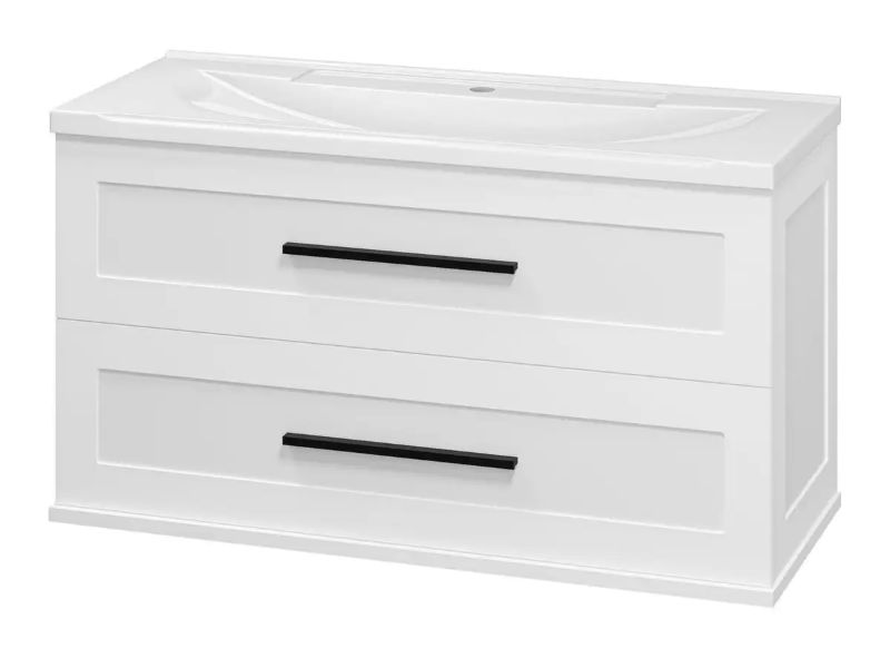 Тумба для умывальника Misty Модерн 100, подвесная П-Мод09100-011Пр из влагостойкого МДФ (Польша, Австрия).Свойства. Фасад и каркас из матового МДФ. Направляющие с доводчиком, скрытого монтажа. Ручки из алюминиевого профиля. Тумба для умывальника Модерн 100 см П-Мод09100-011Пр, подвесная с 2 выдвижными ящиками. Производство. Компания Мисти более 17 лет выпускает качественную мебель для ванной комнаты. Заводской комплекс под Москвой, оснащенный передовым оборудованием из Европы и работающий по новейшим технологиям. Качество. Строгое соблюдение всех международных и европейских стандартов. Многоэтапный контроль качества от выбора сырья до проверки готового продукта. Изображение и цвет на мониторе могут отличаться от оригинала. Комплектность: