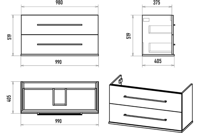 Тумба для умывальника Misty Модерн 100 подвесная 2в.ящ.. Все характеристики |