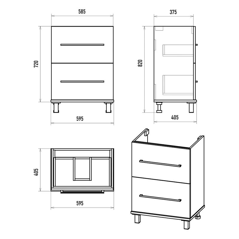 Тумба для умывальника Misty Модерн 60 напольная 2в.ящ.. Все характеристики |