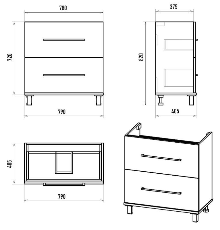 Тумба для умывальника Misty Модерн 80 напольная 2в.ящ.. Все характеристики |