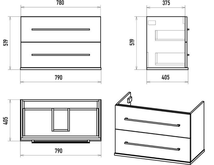 Тумба для умывальника Misty Модерн 80 подвесная 2в.ящ.. Все характеристики |