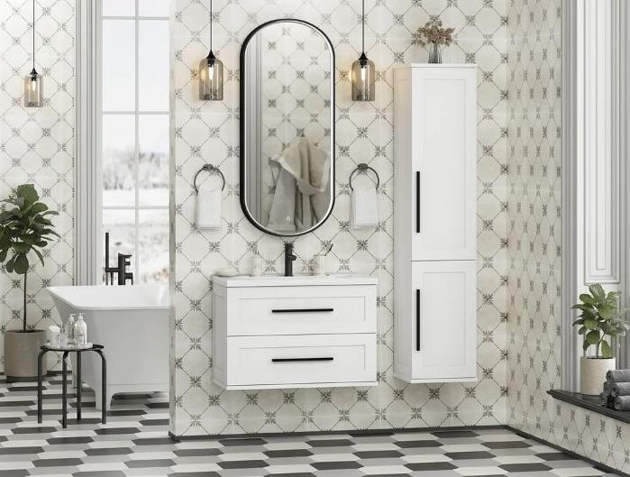 В комплекте: подвесы 2 шт., шуруп с Г-образным крючком 2 шт.Дополнительно комплектуется: умывальник EVVA 80, смеситель, сифон. |