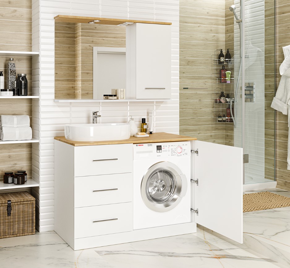 Тумба под стиральную машину Misty Респект 110 для умывальника, левая. Все характеристики |