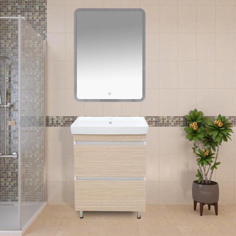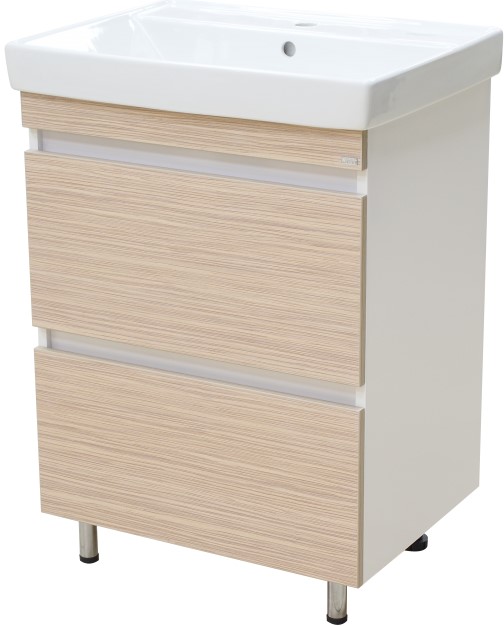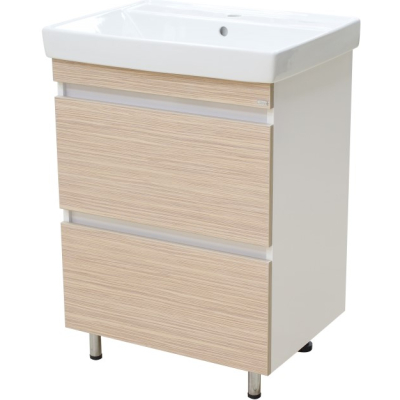 Тумба для умывальника Misty Слим 60 напольная, 2 ящ., светлое дерево\белый. Все характеристики |
