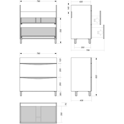 Тумба для умывальника Vela Бриз 80Н 2в.я., Elen. Все характеристики |