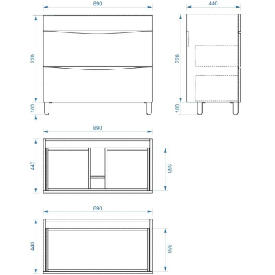Тумба для умывальника Vela Бриз 90Н 2в.я., Elen. Все характеристики |