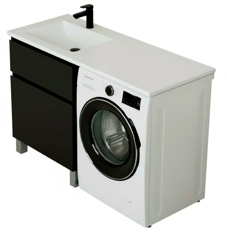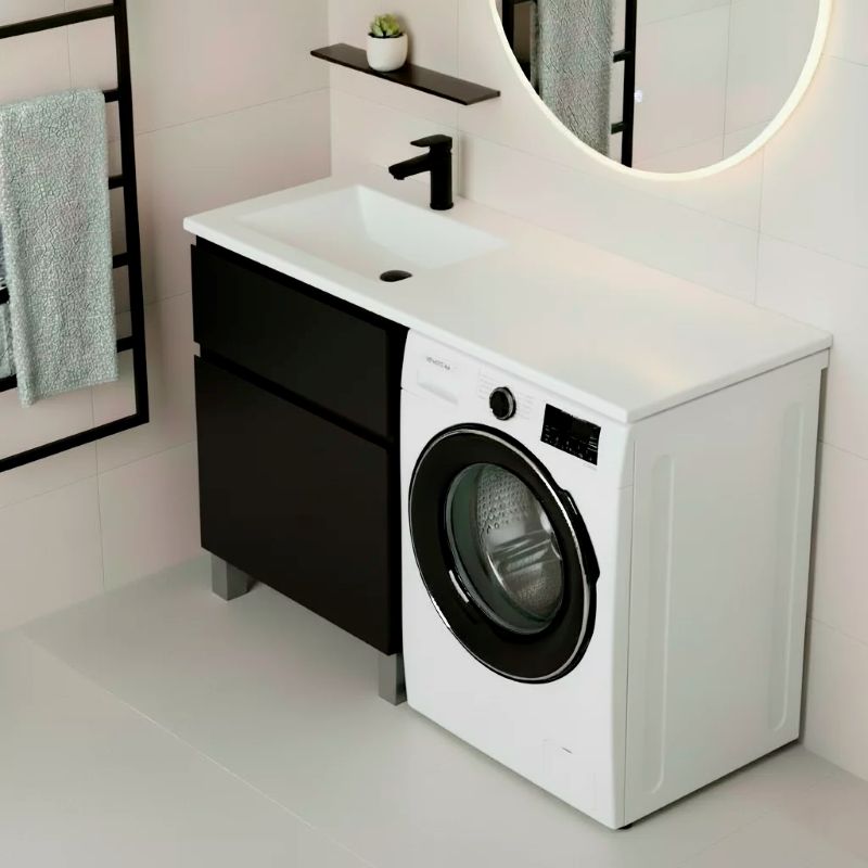 При заказе необходимо выбрать разворот раковины. Разворот определяется по расположению чаши умывальника: чаша-слева, а крыло-справа; чаша-справа, а крыло-слева. Под чашей будет располагаться шкаф, а под крылом - стиральная машина.Тумба для умывальника Vela Мира 38Н TU1620 из влагостойкой МДФ Egger (Австрия). Свойства. Фасады и наружные элементы из МДФ Egger (Австрия)/Эмаль, толщина-19 мм. Шкаф под раковину Мира 38 см TU1620 черный матовый. Доводчик для плавного закрывания. Алюминиевые ножки 10 см с регулировкой +2,5 см. Размеры тумбы указаны без учета габаритов умывальника. Производство. Белорусская компания Vela занимается выпуском мебели для ванных комнат. Собственный конструкторский отдел. Современное оборудование. Качество. Продукция соответствует белорусским ГОСТам и стандартам Таможенного союза. Красивая отечественная мебель высокого качества. Изображение и цвет на мониторе могут отличаться от оригинала. Комплектность: