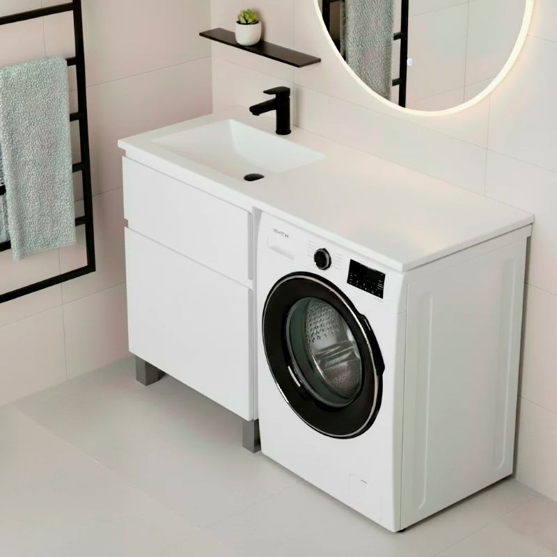 При заказе необходимо выбрать разворот раковины. Разворот определяется по расположению чаши умывальника: чаша-слева, а крыло-справа; чаша-справа, а крыло-слева. Под чашей будет располагаться шкаф, а под крылом - стиральная машина.Тумба для умывальника Vela Мира 38Н TU1617 из влагостойкой МДФ Egger (Австрия). Свойства. Фасады и наружные элементы из МДФ Egger (Австрия)/Эмаль, толщина-19 мм. Шкаф под раковину Мира 38 см TU1617 белый глянец. Доводчик для плавного закрывания. Алюминиевые ножки 10 см с регулировкой +2,5 см. Размеры тумбы указаны без учета габаритов умывальника. Производство. Белорусская компания Vela занимается выпуском мебели для ванных комнат. Собственный конструкторский отдел. Современное оборудование. Качество. Продукция соответствует белорусским ГОСТам и стандартам Таможенного союза. Красивая отечественная мебель высокого качества. Изображение и цвет на мониторе могут отличаться от оригинала. Комплектность: