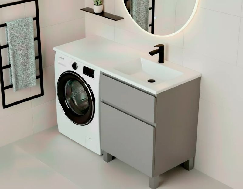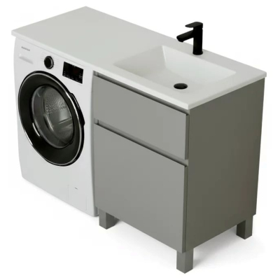 При заказе необходимо выбрать разворот раковины. Разворот определяется по расположению чаши умывальника: чаша-слева, а крыло-справа; чаша-справа, а крыло-слева. Под чашей будет располагаться шкаф, а под крылом - стиральная машина.Тумба для умывальника Vela Мира 38Н TU1619 из влагостойкой МДФ Egger (Австрия). Свойства. Фасады и наружные элементы из МДФ Egger (Австрия)/Эмаль, толщина-19 мм. Шкаф под раковину Мира 38 см TU1619 серый матовый. Доводчик для плавного закрывания. Алюминиевые ножки 10 см с регулировкой +2,5 см. Размеры тумбы указаны без учета габаритов умывальника. Производство. Белорусская компания Vela занимается выпуском мебели для ванных комнат. Собственный конструкторский отдел. Современное оборудование. Качество. Продукция соответствует белорусским ГОСТам и стандартам Таможенного союза. Красивая отечественная мебель высокого качества. Изображение и цвет на мониторе могут отличаться от оригинала. Комплектность: