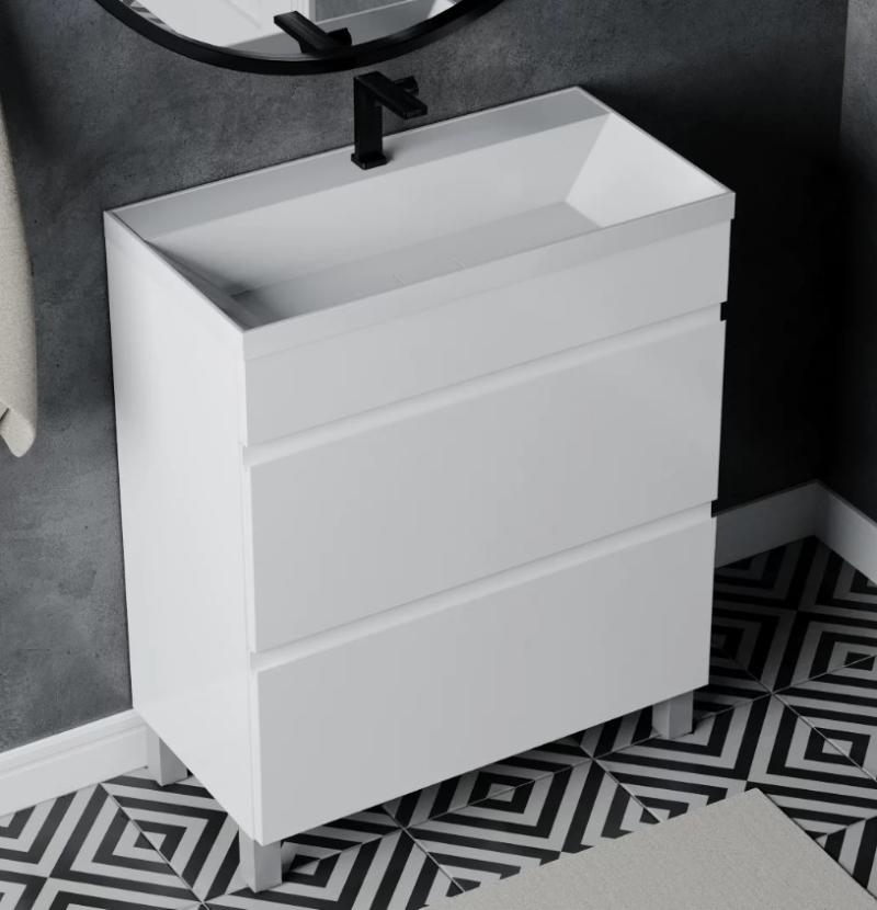Тумба для умывальника Vela Мира 70Н 2в.я. из влагостойкой МДФ Egger (Австрия).Свойства. Фасады и наружные элементы МДФ Egger (Австрия), толщина-19 мм. Полиуретановая глянцевая эмаль Kemichal (Италия) обеспечивает защиту от влаги, выгорания и пожелтения цвета. Насыщенный яркий блеск. Корпус, полки и внутренние детали из ламинированной ДСП Egger (Австрия), толщина-16 мм. Края в шкафу оклеены кромкой ПВХ. Шкаф под раковину Мира 70 см TU20985 с двумя выдвижными ящиками. Доводчик для плавного закрывания. Алюминиевые ножки 10 см с регулировкой +2,5 см. Размеры тумбы указаны без учета габаритов умывальника. Производство. Белорусская компания Vela занимается выпуском мебели для ванных комнат. Собственный конструкторский отдел. Современное оборудование. Качество. Продукция соответствует белорусским ГОСТам и стандартам Таможенного союза. Красивая отечественная мебель высокого качества. Изображение и цвет на мониторе могут отличаться от оригинала. Комплектность: