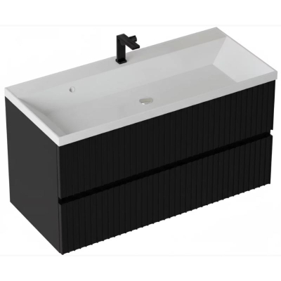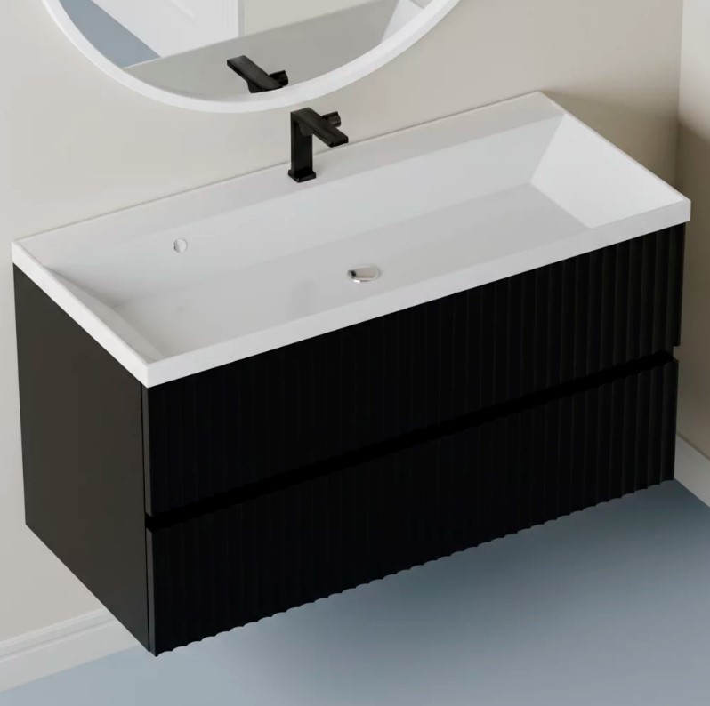 Тумба для умывальника Vela Волна 100П, Classica, 2в.я., черный мат./черный хекси