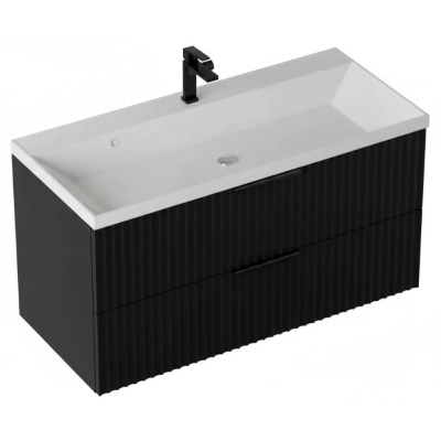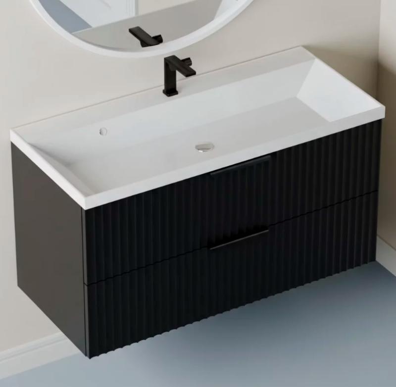 Тумба для умывальника Vela Волна 100П, Classica, 2в.я., черный мат./черный гола