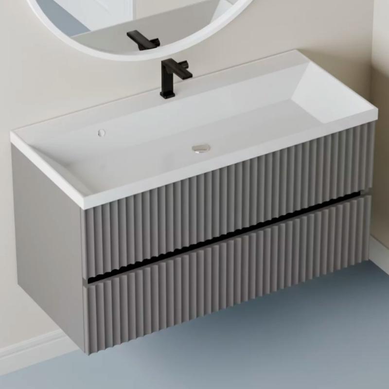 Тумба для умывальника Vela Волна 100П, Classica, 2в.я., серый мат./черный хекси