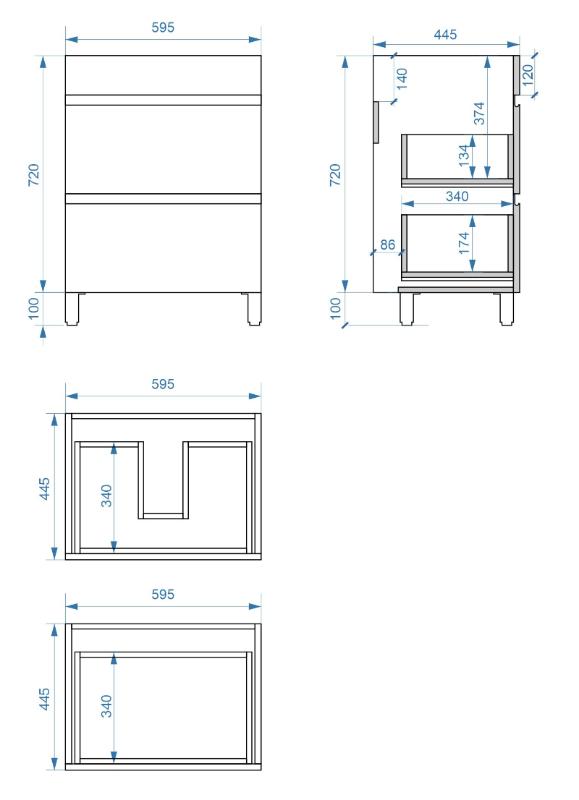 Тумба для умывальника Vela Волна 60Н, Classica, 2в.я., белый мат./белый гола