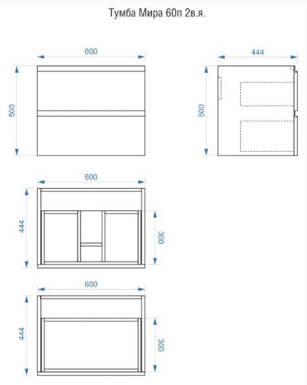 Тумба для умывальника Vela Волна 60П, Classica, 2в.я., серый мат./черный хекси