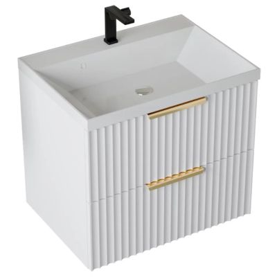 Тумба для умывальника Vela Волна 60Н, Classica, 2в.я., белый мат./белый гола
